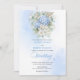 Set the tone for a stylish and unforgettable celebration with this watercolor blue and gold wedding invitation, designed around today’s most trendy wedding color palette. Featuring soft pastel, powder, light, and pale blue hydrangeas, paired with fresh eucalyptus greenery and elegant gold floral accents, this design captures modern romance with timeless appeal.
