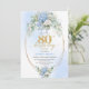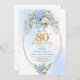 Refined Blue Hydrangea Gold Floral 80th Birthday Invitation