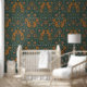 Refined Bohemian Cats - Moody Teal & Orange Wallpaper