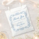 Looking for the perfect little way to say thanks? Our Refined Dusty Blue Baroque Frame Baby Shower Favour Bag is simply exquisite! We like to imagine this timeless design was once used for presenting treasures at a royal baby celebration, now ready to hold your heartfelt gratitude. Its delicate dusty blue baroque frame beautifully surrounds your personalised thank-you message.