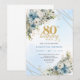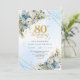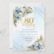 Refined Dusty Blue Floral Gold 80th Birthday Invit Invitation
