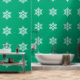 Refined Festive White Snowflake On Green Blue Wallpaper