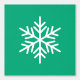 This modern festive design features a large alpine snowflake against a background of green blue.