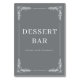 This elegant tabletop sign features a sophisticated gray background with delicate white floral motifs framing the edges, creating an inviting and refined atmosphere. The clean, classic typography announces "DESSERT BAR" in bold letters, followed by a friendly prompt to help yourself, making it perfect for adding a touch of charm to your wedding reception or any special event. With its timeless design and subtle color palette, this sign exudes understated elegance, ensuring guests feel welcomed while enjoying their sweet treats. Its simple yet stylish presentation makes it easy to incorporate into various decor themes, enhancing the overall ambiance of your celebration.