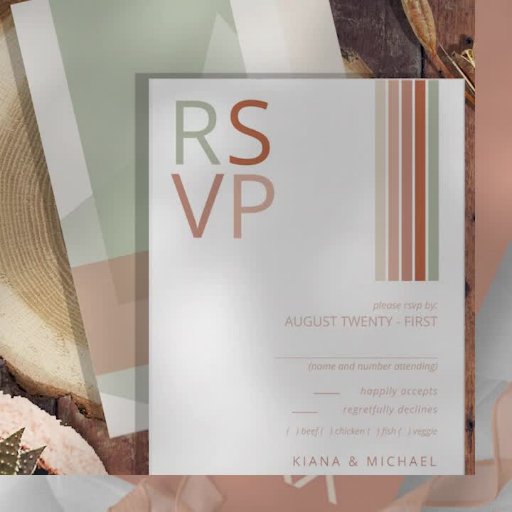 Retro 70's geometric lines have been given a facelift with a colour-blocked background and contemporary colour scheme, to create the pieces of this eye-catching wedding design set. The colour palette ranges from burnt orange through shades of terra cotta and sage green to give this set a very trendy vibe. The wedding 'Details' enclosure card shown here features the above plus a template to easily add your own pertinent event information for your guests. Search ID983 to see all the coordinating pieces in this set.