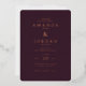This elegant wedding invitation features a sophisticated maroon background with gold typography, creating an air of timeless elegance and refinement. The clean, modern layout highlights the text in a balanced composition, perfect for conveying important details with grace. Ideal for couples seeking a classic yet contemporary look, this design exudes warmth and formality, making it suitable for a memorable celebration. Customize the text to personalize your special day while maintaining its polished aesthetic.