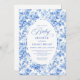 Refined Royal Blue Toile de Jouy Floral Baby Showe Invitation