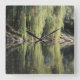 Reflected Willow Trees In River Square Wall Clock