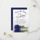This wedding Save the Date card is romantic, elegant, classy, and beautiful. It features a photograph of a single long stemmed navy blue coloured rose reflecting in a pool of water with waves and ripples. The text is a fancy script calligraphy on a white background. The back features a lovely marbled pattern. Perfect way to let your friends and family know about your upcoming wedding.