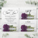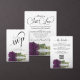 These table number cards will make it easy for your guests to find their seats at your wedding reception. They feature a simple yet elegant design with lacy script calligraphy and a single plum purple coloured rose lying on its side with ripples waves and reflections. The card includes a seating chart with 10 names. There is also space for the couple's names and wedding date.