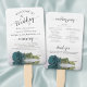 These beautiful wedding program fans are elegant, romantic, classy and tasteful. The design features a single long-stemmed teal or turquoise coloured rose lying on its side, reflecting in a pool of water with waves and ripples. The typography features lacy black script calligraphy, and there is room for details on the ceremony, the bridal party, and a short thank you.