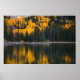 Reflection of yellow aspens in a lake on the Grand Mesa, Colorado