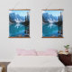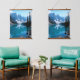 A harmonious wall art piece that captures the calm beauty of snow-capped mountains mirrored in a tranquil lake, framed by lush pine trees. Displayed in a cosy interior setting, the artwork radiates balance and peace, making it perfect for living rooms, reading corners, or meditation spaces. Its symmetrical composition and natural tones invite relaxation and elevate any modern or rustic décor.