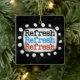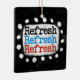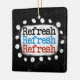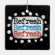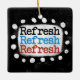 A cute typographic design that says "Refresh Refresh Refresh". It's black, red and blue text on a white rectangle with funky, playful white dots surrounding it, all on a black background.