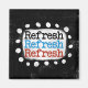 A cute typographic design that says "Refresh Refresh Refresh". It's black, red and blue text on a white rectangle with funky, playful white dots surrounding it, all on a black background.