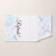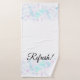 Soft pastel bubbles in blues, pinks and purples on a towel set. Refresh text can be personalised