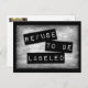 A play on words serves as a reminder to always be yourself. Inspirational and motivational this fun postcard features typography that resembles those old label maker sticker labels.