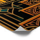 An elegant dog looking upward toward a sunburst. Classic 1920s architectural frame with luxurious gold and teal tones.