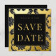Regal Black & Gold Damask Save the Date. Wedding. Elegant. Simple. Square. Digital download option.