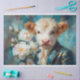 Add a touch of aristocratic charm to your craft projects with this decoupage tissue paper featuring a curly-haired calf in a regal teal and gold brocade coat. Surrounded by lush white blossoms and vintage-style flourishes, this artful design brings together pastoral whimsy and noble elegance—perfect for upscale junk journalling, unique gift wrap, framed art, and farmhouse glam décor.