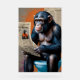 Step into the world of quirky royalty with "Royal Chimp on the Throne". This digital artwork combines realistic animal portraiture with the boldness of pop art, creating a visually striking and thought-provoking composition. The chimpanzee, detailed with expressive facial features and lifelike fur, squats on a toilet, holding a newspaper titled "Daily News." A golden crown hovers over its head, symbolising authority and majesty. The textured abstract background, filled with vibrant tones of orange, pink, and blue, contrasts beautifully with the monochrome subject, adding depth and energy to the piece.