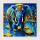 "Regal Elephant In Blue" jigsaw puzzle: AI artwork capturing majestic beauty. Perfect for elephant lovers seeking a challenging and captivating puzzle experience.