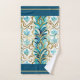 Regal flourishes teal and gold hand towel.