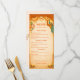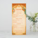 Elegant tall menu card for an Indian wedding or Sangeet. Featuring luxury gold motifs on a rich saffron background. Fully customizable for your wedding feast menu.