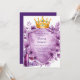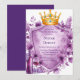 This exquisite wedding invitation template features a royal golden crown adorned with amethyst jewels, nestled above a heraldic shield framed in gold. Surrounding the design are lush lavender and violet peonies, creating a luxurious, vintage floral motif. Perfect for romantic, royal-themed weddings or elegant celebrations with a touch of nobility and floral charm. The blank shield provides space for custom names, dates, or messages.