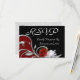 Red, black, and silver response card with menu selections.
