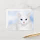 Long haired, possibly Turkish Angora, blue eyed white cat photo postcard