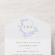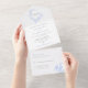 Regency Blue Leafy Monogram Crest Wedding All In One Invitation