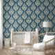 The repeat pattern of delicate ivory scrolls and leaves adds a touch of timeless grace, perfect for creating a luxurious ambiance in any room. Whether adorning a feature wall or enveloping an entire space, our wallpaper blends classic charm with contemporary allure, making it an ideal choice for both traditional and modern interiors. Our wallpaper not only enhances the aesthetic appeal of your home but also offers a great option for renters or dorm rooms since it is peel and stick. Elevate your décor with the allure of history and the refinement of design – indulge in our Peacock Blue Green Damask Wallpaper and transform your home into a masterpiece of timeless beauty.