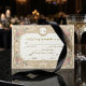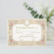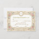 Set the tone for a timeless celebration with this vintage-inspired design. Perfect for requesting the pleasure of your guests' company at a formal affair.This design features a warm, cream-colored background layered with a printed antique paper texture to evoke a sense of history. The layout is framed by a symmetrical border of soft blush pink roses and sage green leaves, intertwined with faux gold filigree scrolls. A delicate line-drawing of a cherub rests at the bottom center, while an oval frame at the top showcases custom initials. The typography blends a traditional serif font with sweeping cursive script for a refined finish.This is a flat printed image with a Faux Gold Foil and Parchment effect, not actual raised material or metal.