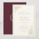 Featuring delicate vintage florals, ornate framing, refined script typography, and a classic monogram crest on a burgundy back, this invitation captures the charm of an English countryside garden party. Designed for romantic, literary, and period-inspired weddings, it evokes the grace of historic manor estates and candlelit celebrations.