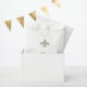 Chic and elegant regency green French fleur de lis "Merci" wedding favour bag. Customise with your wedding details in taupe lettering. The perfect bag for your wedding favours. Designed to match our Regency Green French Fleur de Lis Wedding Collection.