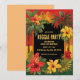 A reggae party invitation, red, gold, green, palms, and hibiscus