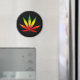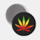 Rasta Leaf © Sunny Mars Designs. Cool customisable Jamaican Reggae Rasta Leaf custom round fridge or refrigerator magnet with a silhouette of a Rastafarian leaf in green, yellow and red Jamaica colours.