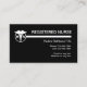 Registered Nurse medical business card template including a medical symbol and simple text layout you can customise online. A distinctive modern look makes this a great business card for a nurse, RN case manager, or home health nurse.