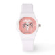Registered Nurse Caduceus Medical White Custom Watch makes a great fashion choice for a nurse. Watch face designed with pastel pink faux glitter sparkling stars background and a white caduceus symbol on the centre. "RN" and personalised with name in white lettering. The watch band is white silicone and available in different styles and colours.