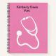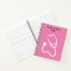 Medical notes book for a medical professional Registered Nurse with image of a stethoscope graphic and monogram space for any nurse name or monogram initials you can customise online with a pink background colour you can leave as it is or change.