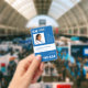 Modern typography hospital or medical centre employee RN nurse custom photo personalised blue ID badge with bold typography, barcode, and your logo. +++++++++++ Template easy to personalise with your photo and details on both sides.