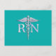 Registered Nurse RN Silver Caduceus on Turquoise Postcard