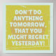 A funny typography design about regrets, this confuses past and present tense and does not make sense. Up to anything tomorrow that you might regret yesterday.