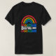 I give wanted to give this a 4 instead of a 5 because these Basic DARK T0shirts run unexpectedly SLIM or Narrow. Which is great if you do not have a potbelly, but I have a paunch. It isn't the shirt's fault that I've got a beer belly. The design and shirt itself is a quality cotton shirt. The color is more of a deep purple, but still a very pretty color. The Basic DARK T-shirts run a bit SLIMMER than the Basic Ts. The neck is a fraction narrower (or seems to be narrower) also. I'm a paunchy middle-aged woman and my neck is 12 inches (31cm) thick and the neckline fell about the same as in the photo of the man, and I had the desire to tug it a bit. So if you're a thick necked man or like loose shirts, be aware these are slimmer shirts. Once I get rid of my lockdown paunch it'll look great. The shirt washed well in cold water with no apparent bleeding. We don't have a dryer, so it hung dry. Did not shrink. Love the colors and the design. The design looks smaller on my shirt than it does on the model on-line. But still, it looks good on the shirt. The printing looks as it does on the model, just the size seems fractionally smaller. Washed garment in cold water, hung dry and design appeared unaffected.