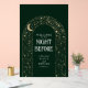 Enhance your rehearsal dinner with an elegant emerald green and gold celestial welcome sign.