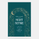 Enhance your rehearsal dinner with an elegant teal and gold celestial welcome sign featuring moon, stars, planet and a shooting star.