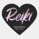 * Customisable heart shaped sticker with a black background and the word "Reiki" in a neon glowing modern pink font. There are 2 lines of text available for you to add your name and Reiki Level. This sticker can also serve as a great branding option for your business. Have fun making it your own.