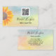 This colourful Reiki Master business card is decorated with a yellow sunflower and colourful watercolor background.