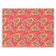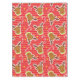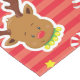 Reindeer and Candy Canes Christmas tablecloth, colourful and fun, features a coral and red striped background with reindeer with red noses and striped candy canes!